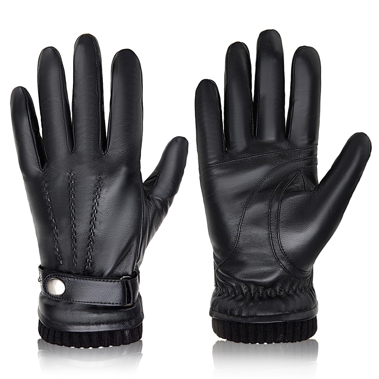 1pair Men Black Winter Double Layer Plus Velvet Thickened Knitted Gloves, Outdoor Touch Screen Warm Full Finger Gloves